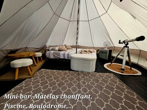 Découvrez une expérience nocturne unique sur notre espace camping! Offrez-vous une nuit insolite sous les étoiles, notre tipi équipé de tout le confort et d'un matériel astronomique accesible aux débutants pour l'observation céleste .