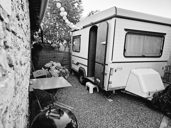 Sur notre espace camping, mise à disposition de notre Caravane des années 80 ( mythique Esterel pliante rigide ) pour dormir, un espace extérieur privatif avec table et barbecue, un sanitaire partagé est a 5 metres de la caravane avec douche, WC, evier mais aussi lave linge, micro onde,... et une place de parking a 15metres.